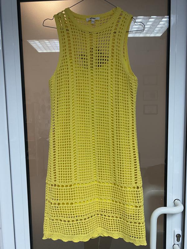 Вязаное платье, двойное , снизу на бретельках тоненькая комбинация. Размер указан ХС. Но подойдёт и на С. Садится на параметры ОТ до 68. ОБ до 95. ОГ до 90. Так как тянется.