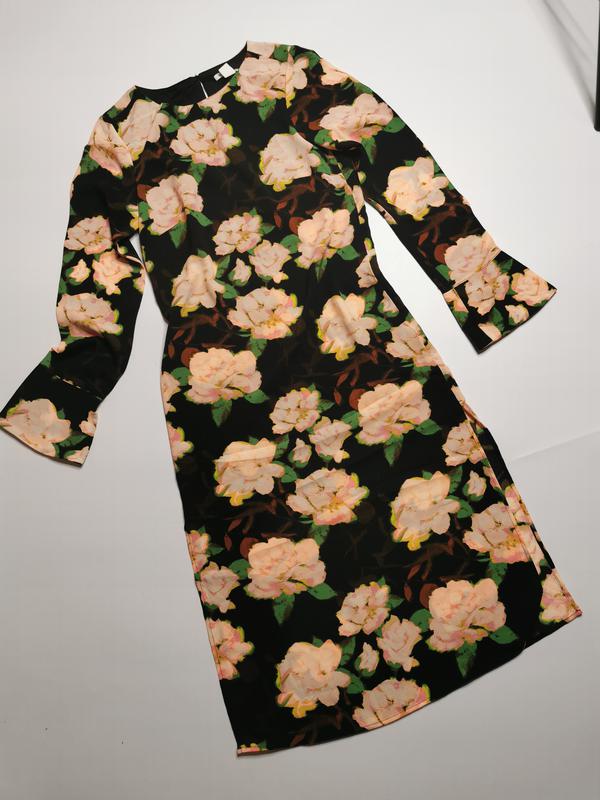 Нове. Оригінал. Плаття завдовжки до літки з тканого крепу. Плаття прямого крою, довгий рукав рік. Ззаду зверху виріз на ґудзику, з боків розрізи. Без підкладки. Збоку розріз. Розмір євро 34, на мій погляд наш S-М , але Орієнтуйтесь на заміри Пог під пахвами 42-45 Піт 42 Побіди 45-49 Довжина 109 Плечі 35, рукав від плеча 62 Дивіться інші мої оголошення. Не пропустіть, всі речі в одному примірнику.