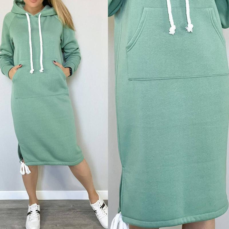 Платье ❤️🔥 АртНРН^ 823 Ткань трехнить на флисе Цвет красный, чёрный, фисташка, мокко, фреза Размер 42-44,46-48,50-52 Цена 490 грн ❣ Платье свободного кроя, с капюшоном, с карманом спереди