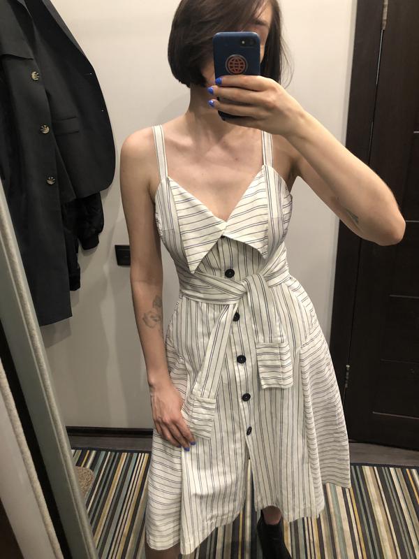 Незвичайне плаття сарафан, в смужку, розмір S, суміш бавовни та льону