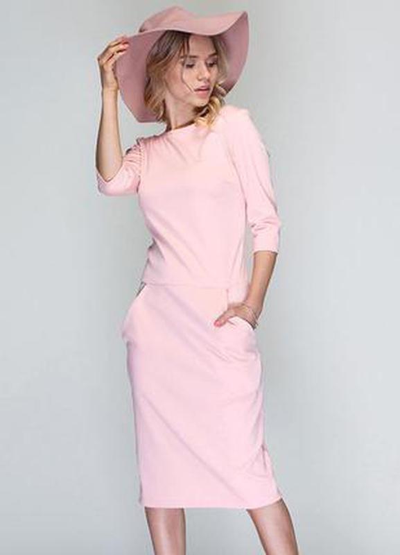 Платье красивого нежно - розового цвета, на все случаи жизни, удобное в носке, ткань - плотный полиестер с эластаном, приятная к телу, тянется, с карманами. Грудь 48,5, талия 44, бедра 50, плечи 34,5, рукав 42, длина 104. Состояние новой вещи без этикетки. Не секонд, личная вещь.