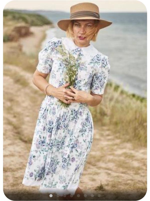 Очень красивое платье миди в мелкий цветочный принт на пуговицах, с белым батистовым воротничком, размер указан s