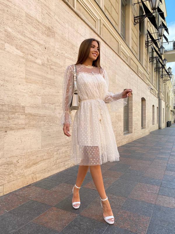 Новый цвет💙 Нежное платье с пайетками ☺️ Мод:416 Цвет: айвори, пудра, голубой Ткань: фатин, на подкладке Размер: универсал 42-44 Длина 93см