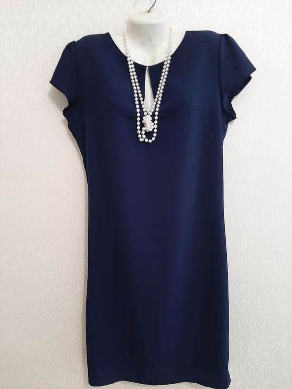 Синее,,,приятное к телу,,лёгкое платьице. Длина-107 ПОГ-55 ПОТ-50 ПОБ-54 Вырез-24 Шир.внизу-52, Рукав-14,фонарик Состав:полиестер,еластан Размер:12,,,(46)