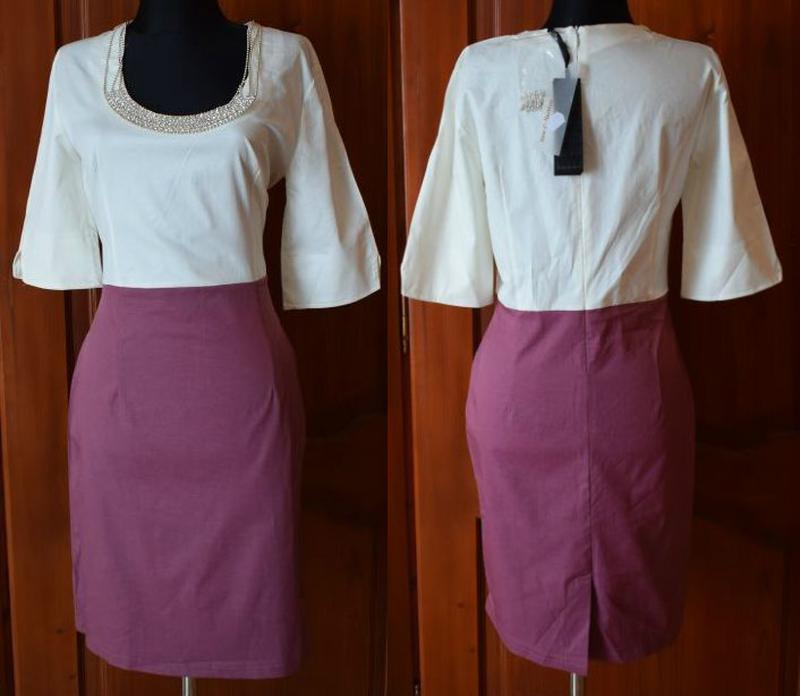 біло рожева елегантна сукня Defile Lux р44 нова бірки вся 104см груди 50-54см талія 42-45см бедра 54-59см плечі 43см рукав 32см 75%віскоза 20%нейлон 5%еластан