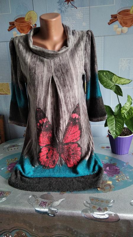 Оригинальное платье свободного кроя, рукав три четверти. в отличном состоянии. 42-48р