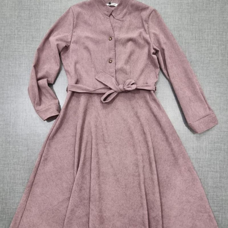 Платья вельветовые, вельвет, новое, одето на рост 160 см и размер М, на бирке на обоих написан 46 размер, что соответствует размеру Л. Пудровофиолетовое (реальный цвет на фото в зеркале) : Грудь 50.5 см, талия 43 см, плечи 39 см, длина рукава 58 см, длина платья от втачки воротника 110 см, от талии 67 см. Мятное: Грудь 50 см, талия 45 см, плечи 38 см, длина рукава 46 см, длина платья от втачки воротника 106 см, от талии 66 см.