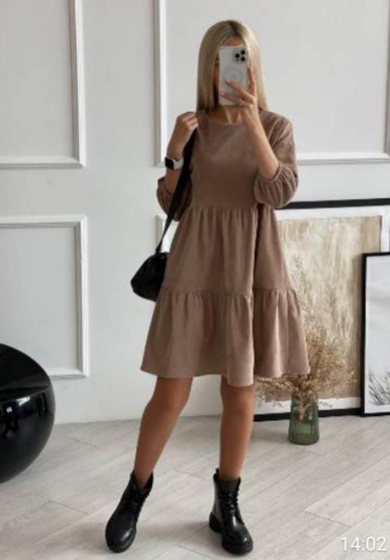 Сукня вільного крою,плечовий шов приспущений,з бічними кишенями,зі змійкою на спині.Супер зручне і стильне.Матеріал микровельвет.