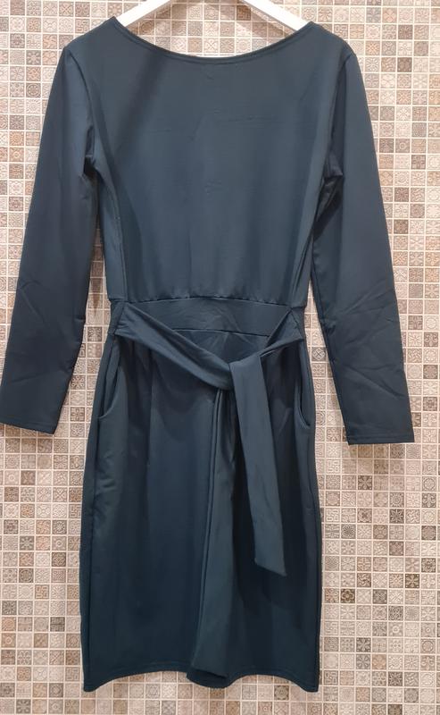 Красивое трикотажное платье, приятное к телу глубокого бутылочного цвета. Очень хорошо садится по фигуре. Размер M-L. Длина по спинке 94см, длина рукава 58см, ПОГ 47см, ПОТ 38см, ПОБ 53см. Обмена/Возврата нет.