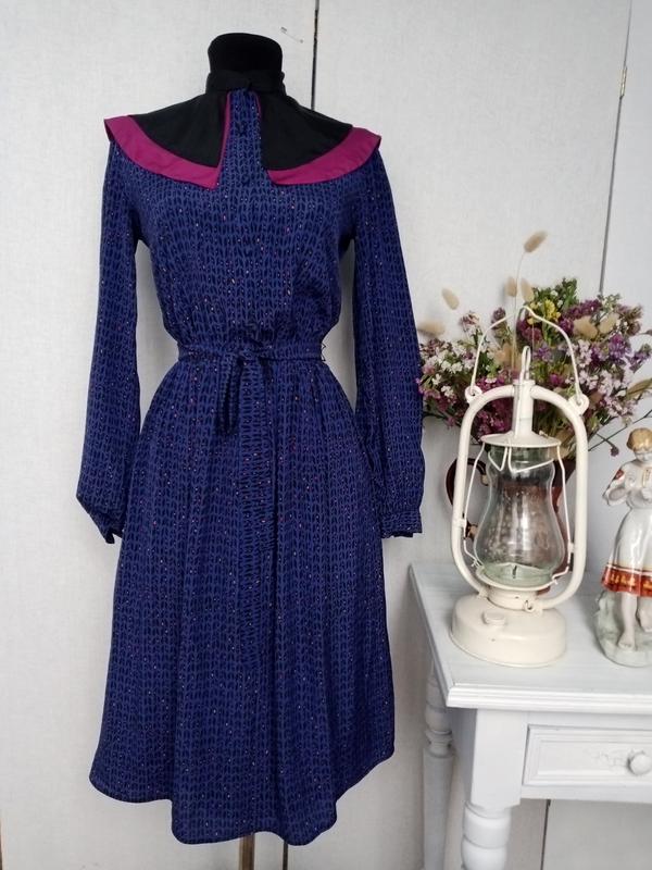 Платье. миди. в принт. с большим воротником. винтажное. винтаж. ретро.