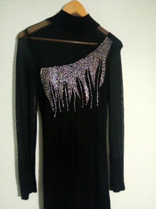 Платье трикотаж,рукав и горло сетка.Остальная часть платья не просвещается.Смотрится шикарно. Длина 84 Пог 38тянется до 53 Рукав 62