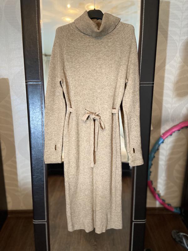 Бежевое, вязаное, теплое платье гольф, размера - очень тянется подойдет на разную фигуру! Пересылаю новой почтой после полной оплаты. Возврата нет!