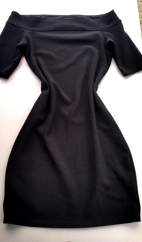 черное вечернее прямое платье, с открытыми плечами в мелкий рубчик,круто смотрится под черные колготы и лоферы. грудь на 85 см бедра на 90 см длина 80 см