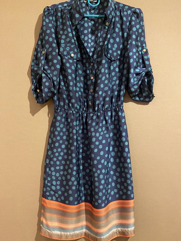 Платье приталенное, от талии прямое, чуть ниже колена. В комплекте 2 пояса