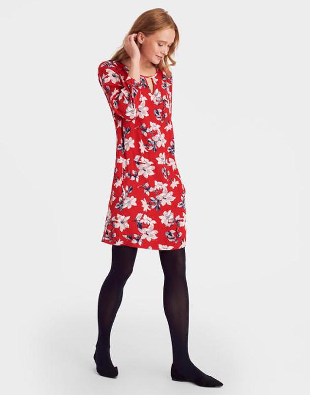 Размер 10,36 Вискоза, подкладка шифон полиестер, есть затяжка на рукаве, сзади, по характеру, скорее всего фабричная, при изготовлении ткани Пог 46,пот 50,поб 53,длина рукава 51,длина платья от плеча 90,есть прорезные карманы, подойдет на размер с-м