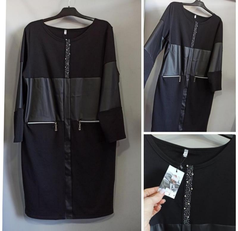 Абсолютно нове, трикотажне плаття, з шкіряними вставками. Розмір вказано -52 ПОГ - 56см.довжина по спинці -102см Плечі -приспущені -44 см рукав від плеча -58см