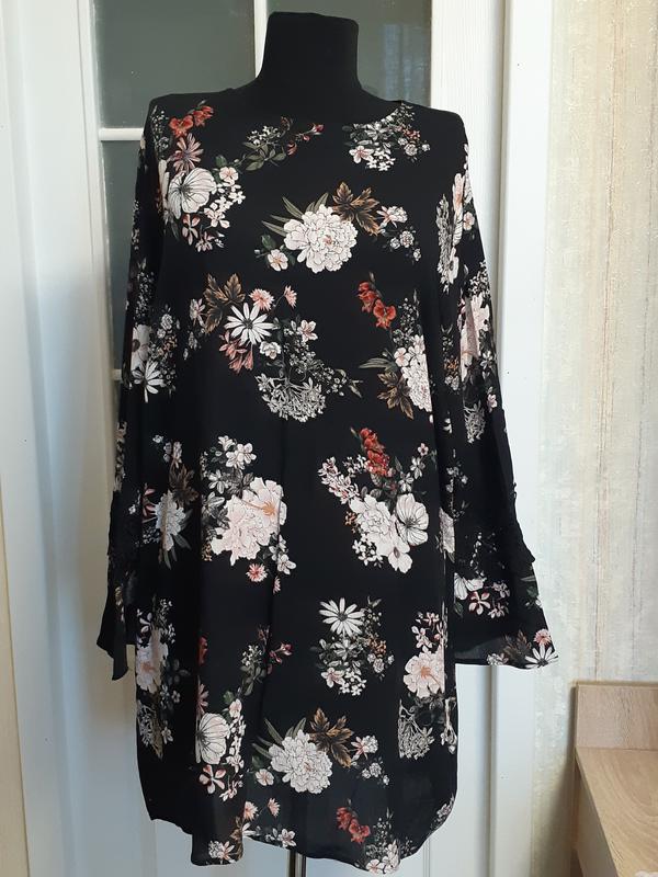 красивое легкое платье до колен рукава расширены оытделаны черным кружевом. размер 50, 52, 54, замеры по запросу.