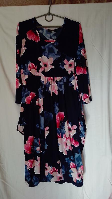 платье женское, в идеальном состоянии,размер L, 46, 48,темно - синее с розами, Англия