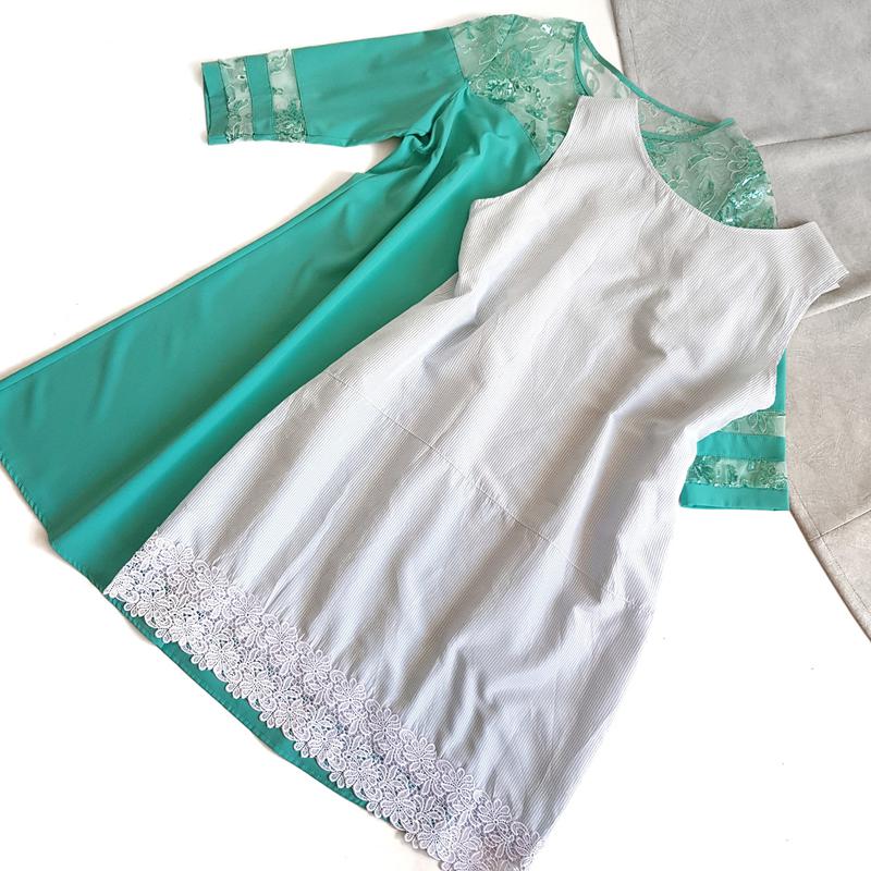 Сарафан женский белый в голубую вертикальную полоску с кружевом снизу Размер 50(***) (Фото реальные, сделанные нами)