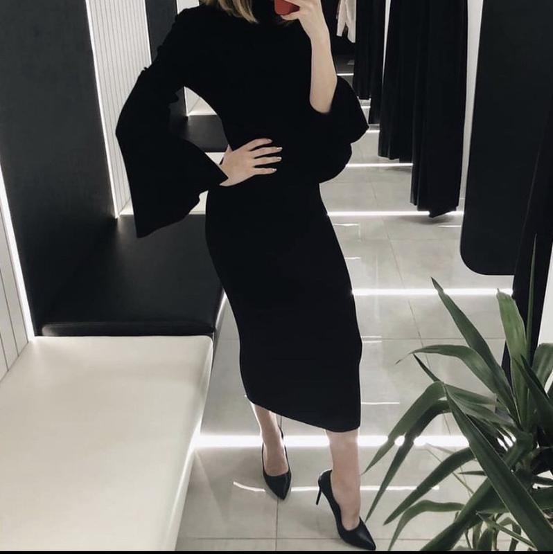 Платье миди за колено, тянется, с акцентом на красивые рукава, на рукавах разрезы, рукава при движении сразу привлекают внимание 😍 цвет чёрный (Турция)