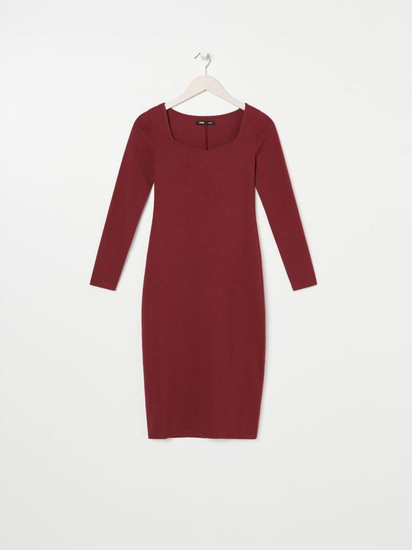 Бордовое миди платье Sinsay. Размер S. Состав: 95% хлопок, 5% эластан Замеры: везде тянется +25см ПОГ 37см ПОТ 34см ПОБ 40см рукав 57см плечи 35.5см длина 106см