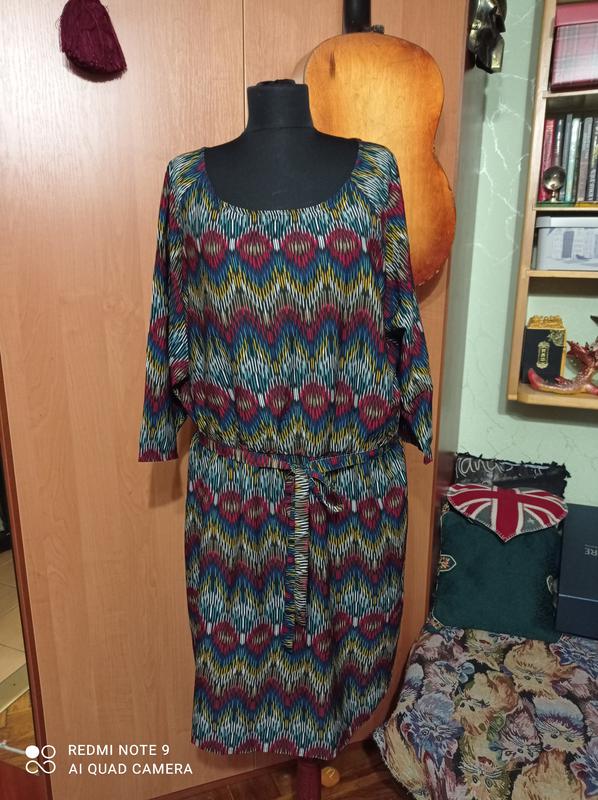 Заказа принимаю от 100грн. Цветное, яркое платье, с подкладкой, с поясом, без карманов в идеальном состоянии, ткань очень мягкая, приятная к телу. Размер XXL. Длина - 96см; Рукав - реглан - летающая мышь; ПОГ - 61см; ПИТ - 49+см на резинке; ПОБ - 60см. Фото выполнено на манекене 34 размера, и принимайте это во внимание. Возвращение или обмен нет, пожалуйста, обдумывайте, делайте покупку. Оплата и доставка: Оплата на карту ПриватБанк или - 100%