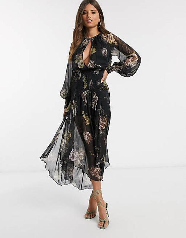 Невероятно-кокетливое и соблазнительное платье в бежевые цветы от Asos design! Откровенные разрезы и лёгкость шифона создают поистине привлекательный вид! Размер указан 36EU = будет на наш S/M. Смотрите по меркам: Длина 115/123 см. ПОГ 46 см.+вырезы. ПОТ 32/42 см (резинка широкая тянется!), Поб свободно.