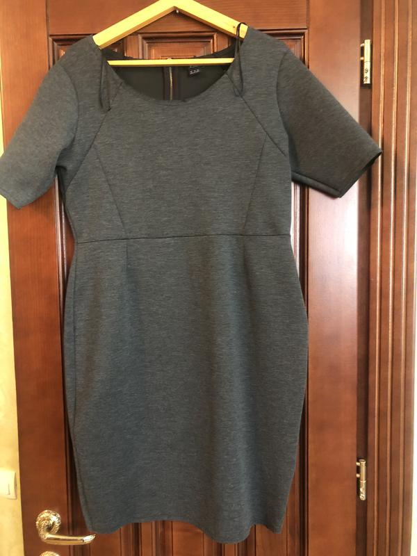 Серое платье из плотного трикотажа с необработанными краями горловины , рукавов и низа