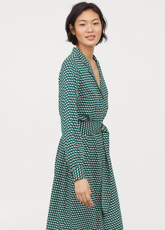Платье длиной до икр из вискозной ткани. На платье v-образный вырез и отворот по лацкану, а также потайная застежка на пуговицы спереди. Съемный пояс с полукруглыми кольцами из металла. Длинные, слегка присборенные рукава с манжетами на пуговицах. Без подкладки. Размер XS, большемерит, будет и на S ПОГ - 52 см ПОТ - 53 ПОБ - 56 см Длина - 120 см Состояние новой вещи, без этикетки. Состав: вискоза 100%