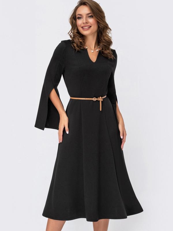 Элегантное платье с разрезами на рукавах миди ниже колен в деловом стиле для офиса нарядно...