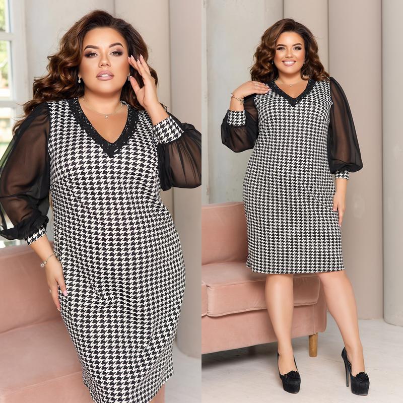 Платье Мод: 348/1 Платье миди с шифоновыми рукавами и v-образной горловиной из ажура Ткань: французский трикотаж, шифон Размер: 48-50, 52-54, 56-58 😍Цена: 580 грн. 💰😍 Цвета: гусиная лапа Длина батал (48-50, 52-54, 56-58) : платья(48-50/52-54/56-58) – 98/101/102 см. рукав (48-50/52-54/56-58) – 61/61/62 см. *рост модели – 168 см. р.48-50 ОГ-ОТ-ОБ: 106/102/114 см. р.52-54 ОГ-ОТ-ОБ: 114/110/122 см. р.56-58 ОГ-ОТ-ОБ: 122/118/130 см.