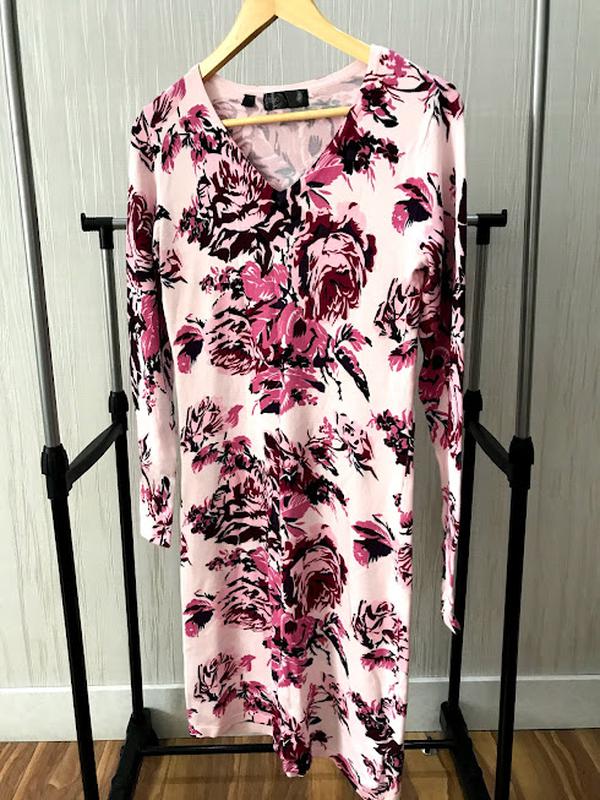 Красивое разноцветное розовое платье с принтом р. 36/38 цветочный принт, теплое трикотажно...