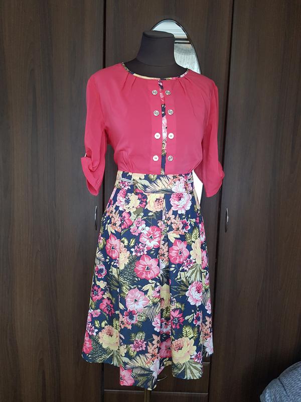 #39 Нежное платье в цветочный принт🍁 верх шифоновый, юбка хлопковая с примесью эластана сзади внутренняя змейка, также дополнительно фиксируется на пуговицу , есть карманы, рукав три четверти состояние нового Длина: 98 см пог: 50 см пот: 42- 45 см поб: свободно ПРОДАЮ много юбок, кофточек, платьев и под платье, заходите в профиль 😉 Поддержите ПОДПИСКОЙ, обновления каждый день👌при покупке от 2 вещей вы получите хорошую скидку, всегда на связи с вами♥️
