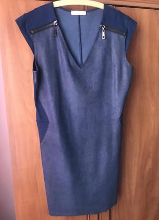 Сукня або може бути як сарафан насиченого синього кольору, тканина під замш, розмір підійде на М Довжина-80 см ОГ-49-50 см