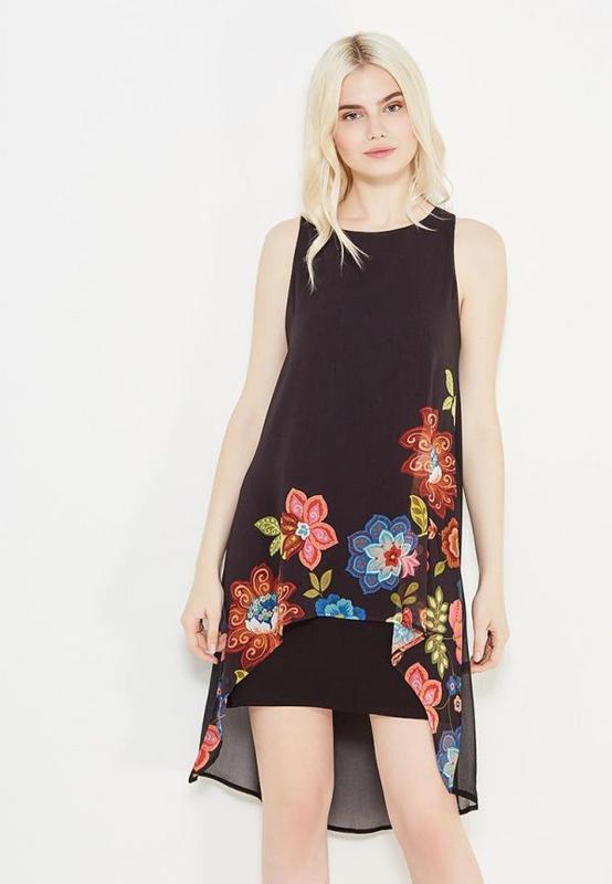 Платье бренда desigual Испания евр 36 Есть подкладка Спереди фасон короче чем спинка Идет майкой на расширение Верх тонкий полистер как шифон подкладка вискоза с эластаном