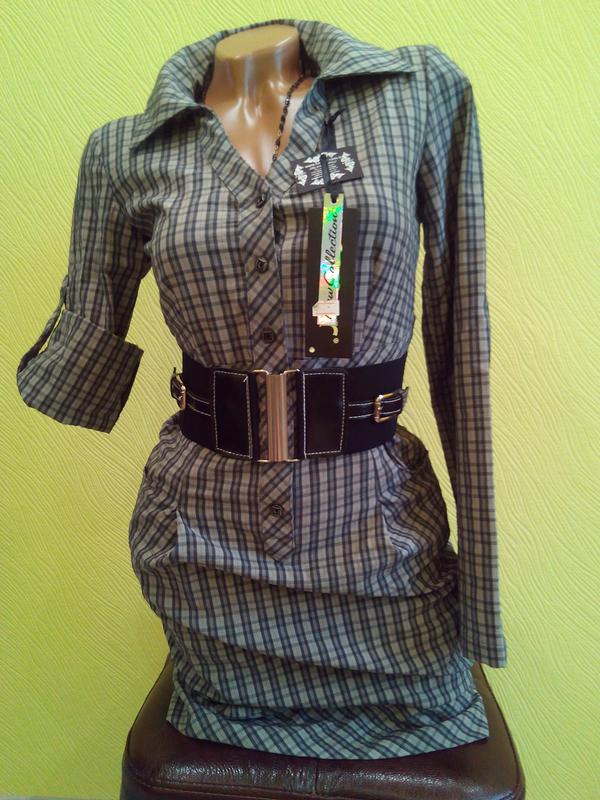 Стильное платье-рубашка kaner,клетка пояс,турция 38,
