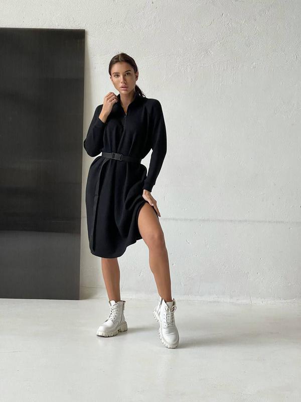 ПЛАТЬЕ мод.I.B ткань: двухсторонняя ангора размеры: 42-46, 48-50 цвета: серый, беж, чёрный Пояс в комплекте Фото Реал