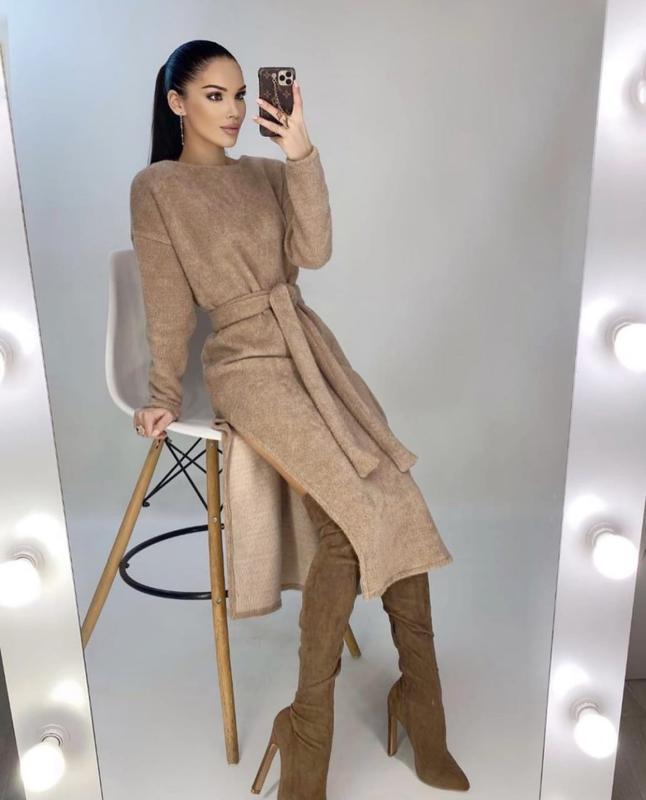 Артикул: 881-709 Цвет: молочный, песочный Размеры: 42-44, 46-48, 50-52 Материал: ангора Очень мягкотелей, приятное к телу, пояс в комплекте Заказать 💌