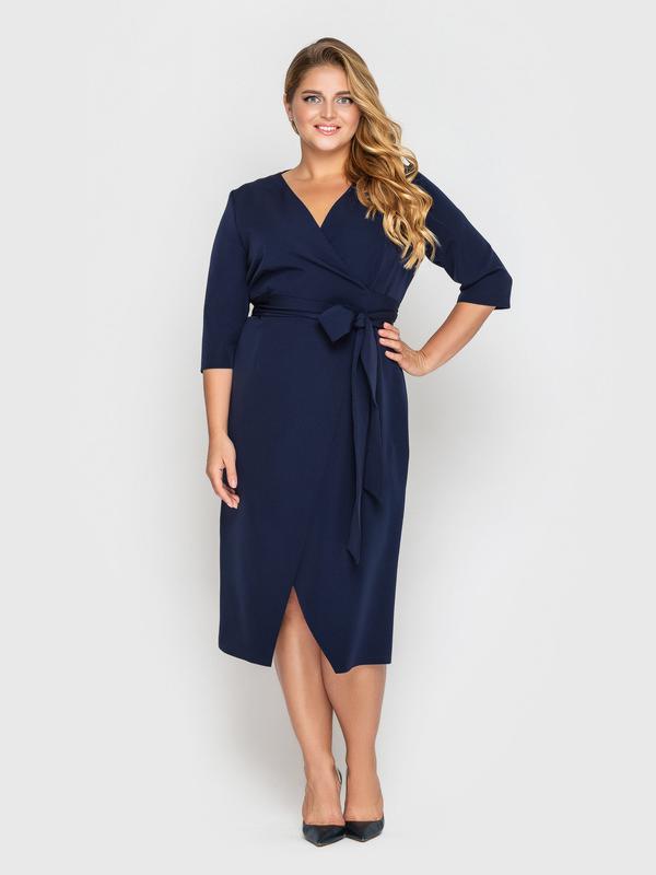 Розміри 46, 48, 50, 52, 54, 56, 58, 60, 62 Тканина креп-лайт. Зростання моделі 170 см, розмір 52. Колір: синій Надзвичайно сексуальна і одночасно стримана модель. Сукня відрізна по талії. На поличці ліф з запахом і фіксованим декоративним поясом, зав'язуються на витончений бант. Ліф полички і спинки на трикотажній підкладці. Спідниця полички подвійна на запах, дуже помірно оголяющая жіночі ніжки. По переду ліфа - виточки нагрудні і талиевые, в які втачан пояс. Спинка з центральним швом на потайної застібки "блискавки" і талиевыми выточками. Сукня довжини міді з завужені низом, що візуально робить фігуру легше, витонченіше і в цьому вся магія цього сукні: жінка виглядає сексуальною, привабливою з шикарною фігурою, дивно ніжною та жіночною. Рукав три чверті. Тканина креп-костюмка монохром. Модель допускає додаток біжутерією, кулоном, брошкою, косинкою, браслетом. Неперевершена річ для фантастично чуттєвої жінки! Таблиця розмірів Розмір Обхват грудей Обхват талії Обхват стегон 48 94-97 79-81 102-104 50 98-102 82-85 105-108 52 103-105 86-90 109-112 54 107-110 91-95 113-116 56 111-113 96-98 116-120 58 115-117 99-102 121-124 60 119-121 103-105 126-128 62 123-125 107-109 130-132