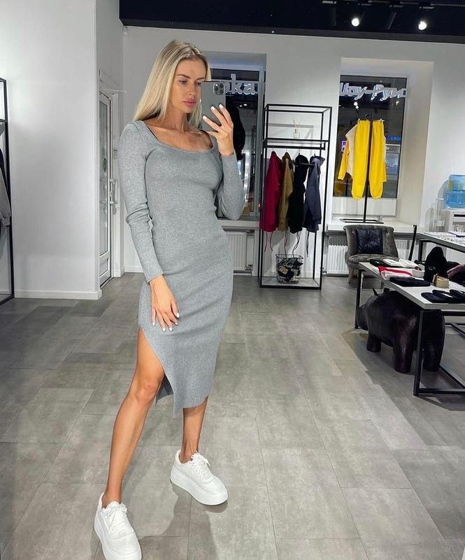 🔝NEW AUTUMN🔝 Платья идеальной длины с разрезом (Фабричный Китай) ткань плотный трикотаж размер универсальный 42/46 длина см рукав см цвет: фуксия,белый,серый,черный,мокко
