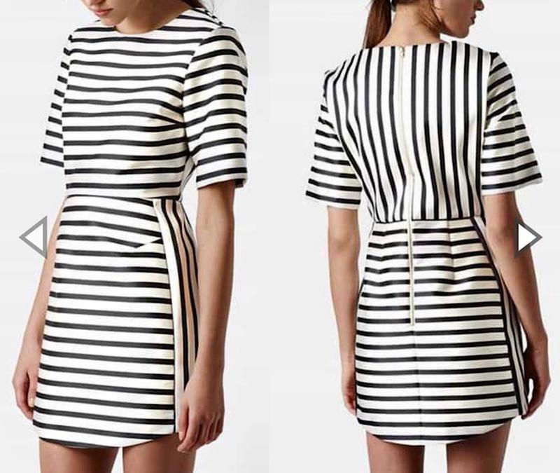 Очень стильное атласное платье в полоску , средней плотности , отлично держит форму ( примерно , как неопреновые вещи ) Оригинальный крой и великолепное качество ❤️ ▪️длина 83 см ▪️ПОГ 46 см ▪️ПОТ 38 см ▪️ПОБ 48 см ▪️плечи 38 см ▪️рукав 28 см Без дефектов и нюансов, а новом состоянии !