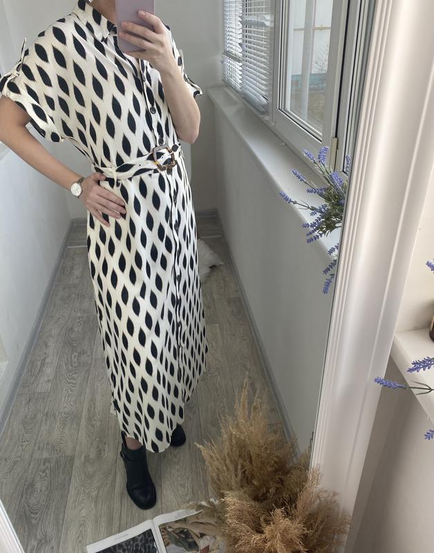 Девочки платье действительно стоющее! Качество ткани не передать фото! Актуальная модель! Состав ткани - 100% Rayon ( искусственный шёлк) вискоза! Есть запасная пуговицы’ новое, следов носки нет абсолютно! Есть подклад так же со 100% вискозы!! Замеры: Ог - 100 см / свободно за счёт спущеного плеча! Бёдра - до 120 см Талия под пояс - до 47 см Длина - 122 см На бирке 14 подойдёт на высокой рост 12/14 Да а мне одето на рост 168 см с ходовым размером 10/12