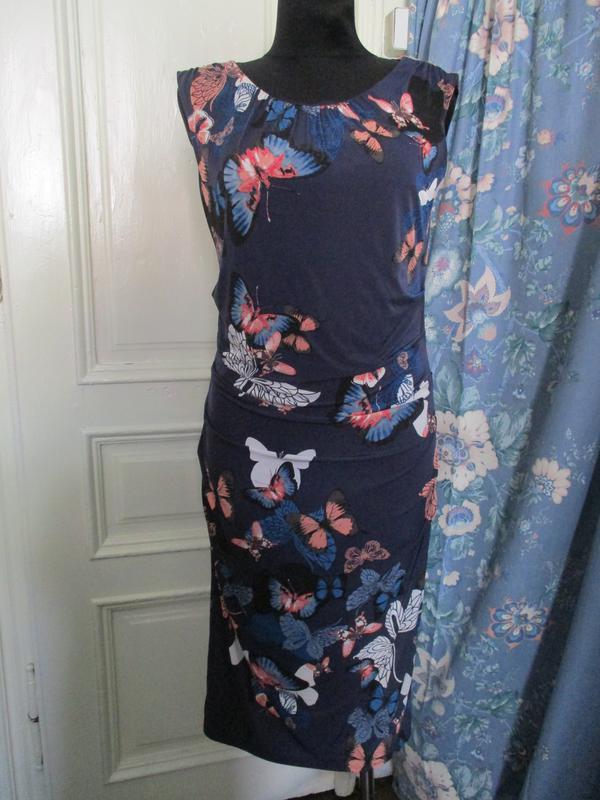 платье синего цвета.полиэстер.ПОГ 59.ПОТ 41.ПОБ 54.длина 127.сзади молния