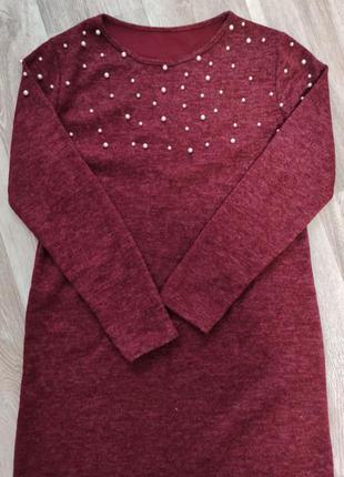 Элегантное платье цвета бордо. Верх декорирован бусинами на заклепке(при стирке ни одна не отпадет) А низ украшает кружево. 44 размер Состояние идеальное