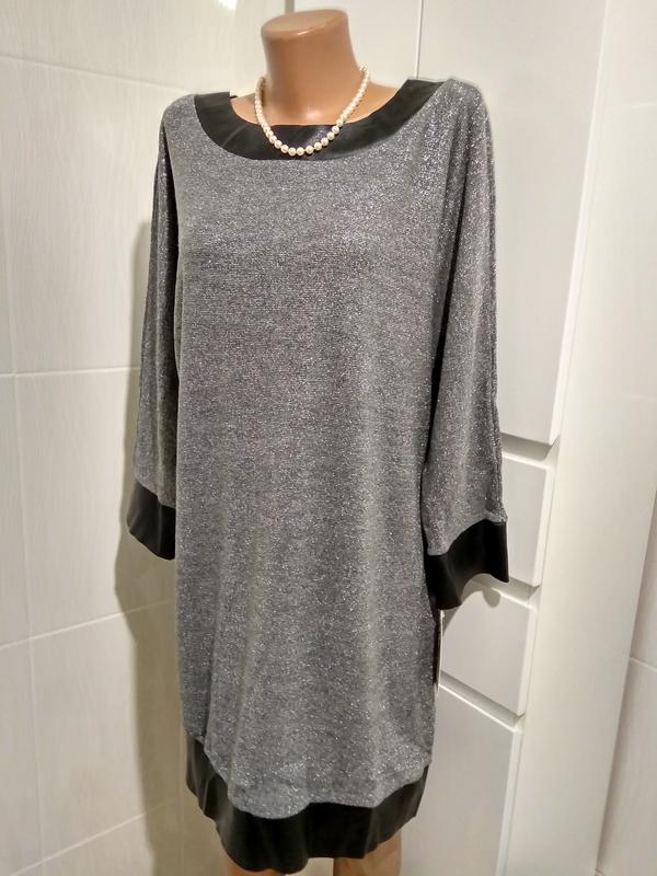 Нарядное платье туника Италия шикарная модель с внутренней стороны тонкий слой ангора комбинировано вставками экокожа хорошо садится от 48 до 52 размера длина 90 пог и поб 56 тянется