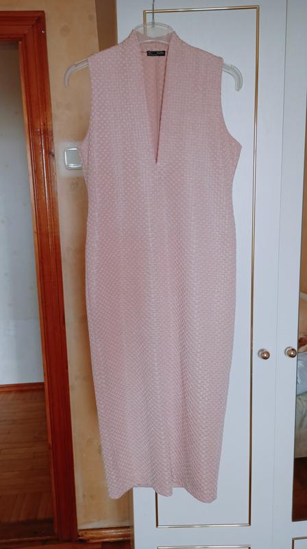 Стильное платье в цвете пыльная роза. Фактура плетения нити похожа на соты. Впереди глубокий вырез (можно носить с кружевным топом), сзади шлица.