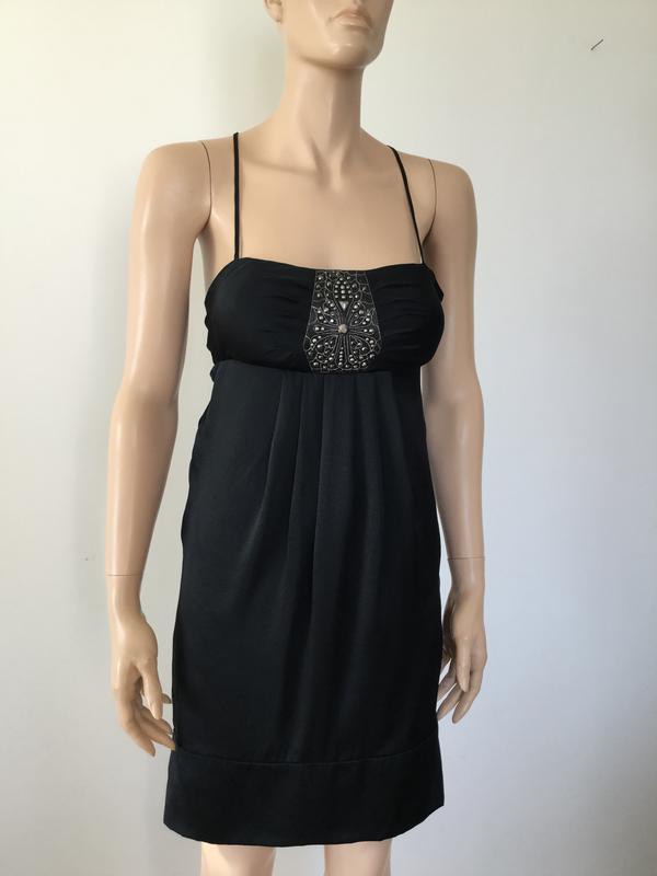 Плаття з натурального шовку розмір S, але маломірить на XS, має поролонові чашки. На грудь 83-84 см, бедра вільні до 96 см, довжина 90 см. Склад Шовк Доставка Доставка новою або укрпоштою після оплати на картку приват-банку, повернення та обміну немає, тому уважно дивіться на заміри речі. Дивіться інші моі оголошення та підписуйтесь на мою сторінку, багато брендових речей за доступними цінами