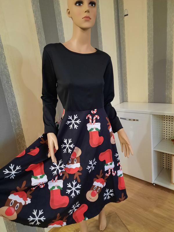Яркое новогоднее платье. Подойдет на размер L-XL. Длина 103 Пог 46 Пот 42 Рукав 59 Хорошо тянется.