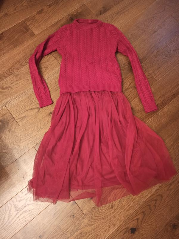 Продам платтячко. У відмінному стані. Колір бордовий, темніший ніж на фото. Можна носити разом, а можна кофту окремо, а спідничку окремо. Я їх розшила і спідничку поставила на гумку. Оскільки була потрібна тільки спідниця. Кілька разів оділа низ, а кофту лише один раз. Тож все як нове.