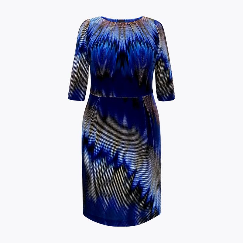 Сукня «північне сяйво», яка і на вихід, і в офіс. Яка не вицвітає після прання і не розтягується. В якій ви точно будете відчувати себе впевнено цілий день. Турецький велюр на трикотині. Якісна щільна тканина, але водночас дуже м’яка, не мнеться і дає тілу дихати. Не потребує ніякого особливого догляду. А колір! Поєднання глибокого королівського синього з золотим! ✔ Розміри 46(M), 50(XL), 52(2XL) 💖 Всі речі - дизайнерські, виготовлені обмеженою кількістю і мають відмінну якість. В цій сукні краще орієнтуватись на параметри талії і стегон, вона добре еластична, в грудях можна брати без припусків. Розтяжність - ВИМІРИ готової сукні: розмір 46 (M) Напівобхват грудей – 48 см. Напівобхват талії – 42 см. Напівобхват стегон – 53 см. Довжина рукава - 42 см. Напівобхват рукава (біцепс) – 17,5 см. Довжина по переду (від лінії плеча) - 100 см. розмір 50 (XL) Напівобхват грудей – 52 см. Напівобхват талії – 46 см. Напівобхват стегон – 57 см. Довжина рукава - 43 см. Напівобхват рукава (біцепс) – 18,5 см. Довжина по переду (від лінії плеча) - 104 см. розмір 52 (XXL) Напівобхват грудей – 54 см. Напівобхват талії – 48 см. Напівобхват стегон – 59 см. Довжина рукава - 43,5 см. Напівобхват рукава (біцепс) – 19 см. Довжина по переду (від лінії плеча) - 106 см.
